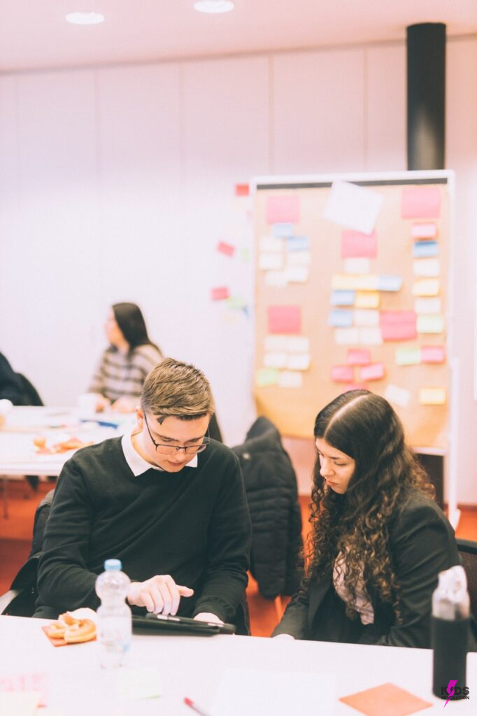 Der erste Tag stand im Zeichen des Teambuildings und des Verstehens des Themas. Neben eigenen Überlegungen haben die Teams in der Ludwigsburger Innenstadt auch Jugendliche befragt und einige Erkenntnisse gesammelt. Hierauf basierend haben die Teams nutzerzentrierte Herausforderungen abgeleitet, mit denen sie am zweiten Tag in den Lösungsraum gestartet sind. Es sind viele kreative und neue Ideen entstanden, welche im nächsten Schritt als Prototyp dargestellt und mit Nutzer*innen getestet wurden. Die finalen Ideen und Lösungen wurden am dritten Tag ergänzt um ein Business Model Canvas (Geschäftsmodell) und ein kurzes Video, welches das MvP ((Minimal Viable Product, Minimal funktionsfähiges Produkt) ihrer Lösung vorstellt. Mit etwas Zeitstress sind die Teams dann in die Vorbereitungen für ihre Pitches eingestiegen. Und zuletzt haben sie alle tolle Präsentationen vor der Jury abgeliefert! Respekt!