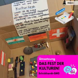 Gesagt getan! Dank eines unglaublich engagierten SMV-Lehrer*innen-Teams konnten die SMV-Schüler*innen an ihrer Idee weiterarbeiten und die Idee wurde aus dem Schuhkarton und Legomodell zum bunten, vielfältigen, diversen Schulfest!
