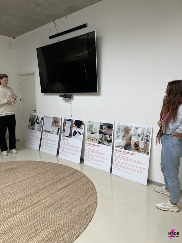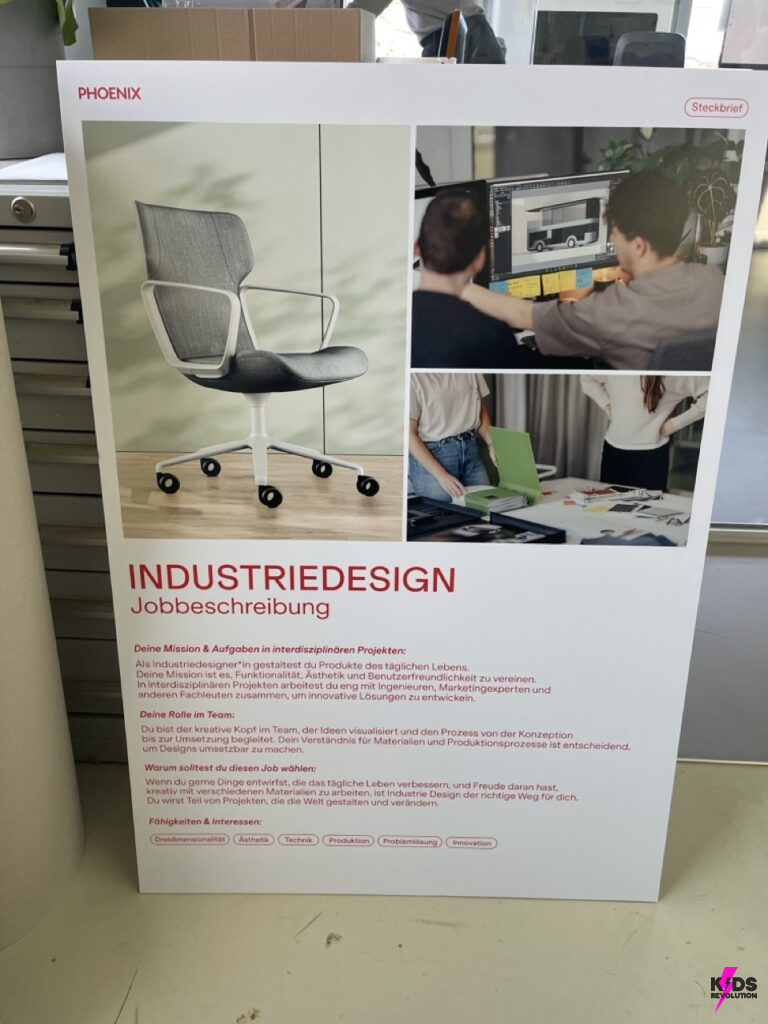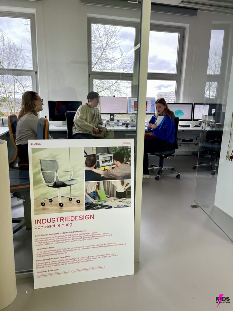 Tag 3: Kreativtag bei Phoenix Design. Die Teilnehmenden erfahren und erleben, wie Industriedesigner, UX Designern, Researcher u.a. kreative Menschen arbeiten und neue Produkte und Services gestalten und entwickeln.